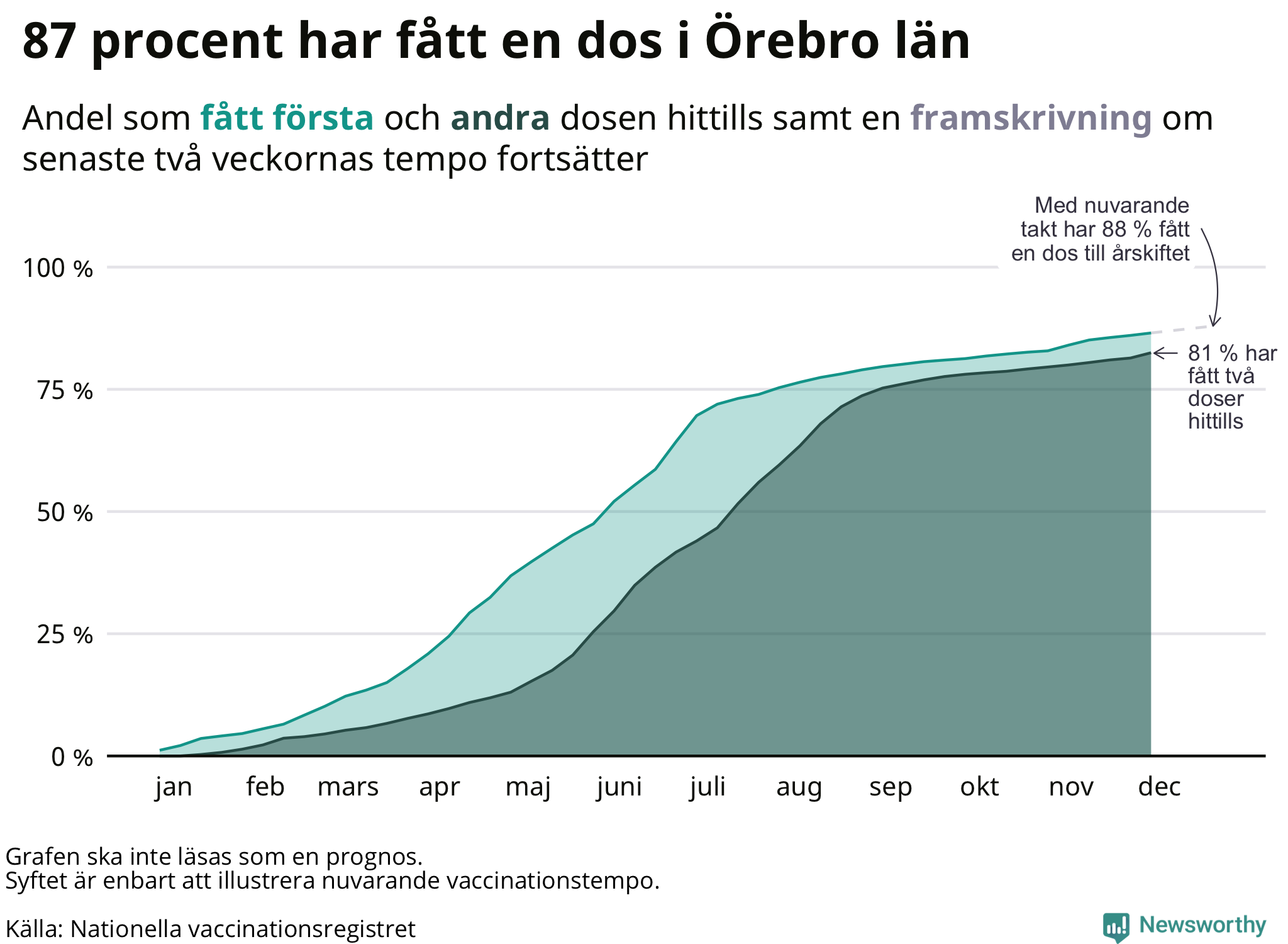 I hela Örebro län har 87 procent av befolkningen har fått en första dos.