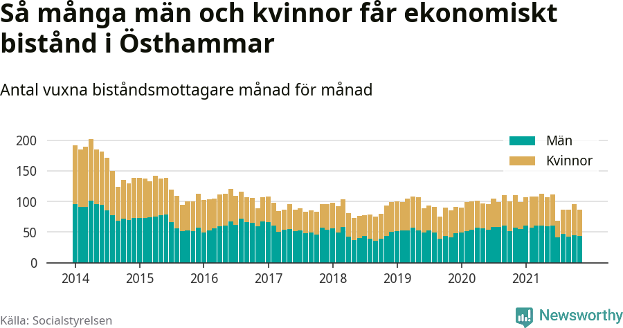 Av biståndstagarna i Östhammars kommun var förra månaden 42 kvinnor och 44 män.