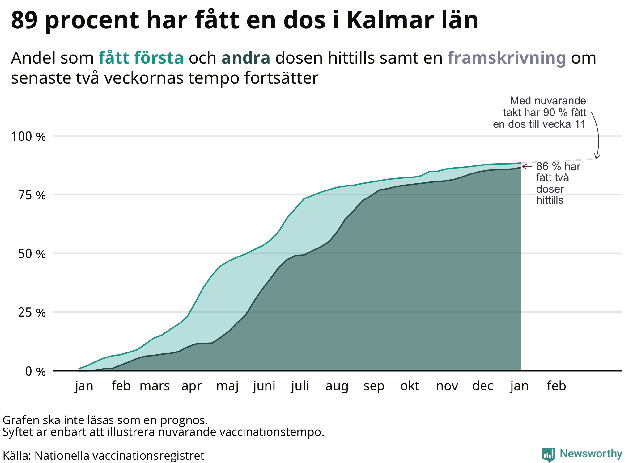 I hela Kalmar län har 89 procent av befolkningen har fått en första dos.