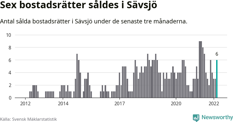 Mellan januari och mars gjordes sammanlagt sex affärer med bostadsrätter i Sävsjö kommun. Det kan jämföras med tre vid motsvarande tid i fjol.