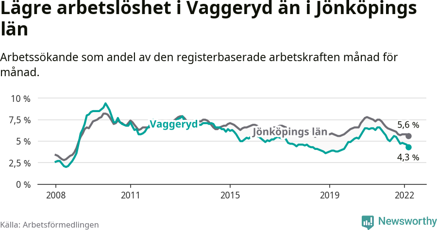 Så utvecklas arbetslösheten i Vaggeryds kommun.