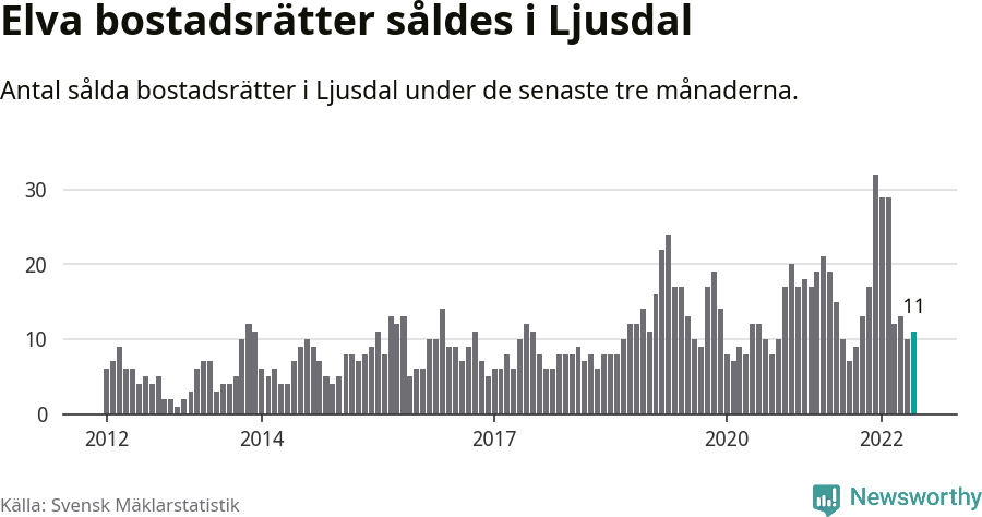 Mellan april och juni gjordes sammanlagt elva affärer med bostadsrätter i Ljusdals kommun. Det kan jämföras med 15 vid motsvarande tid i fjol.