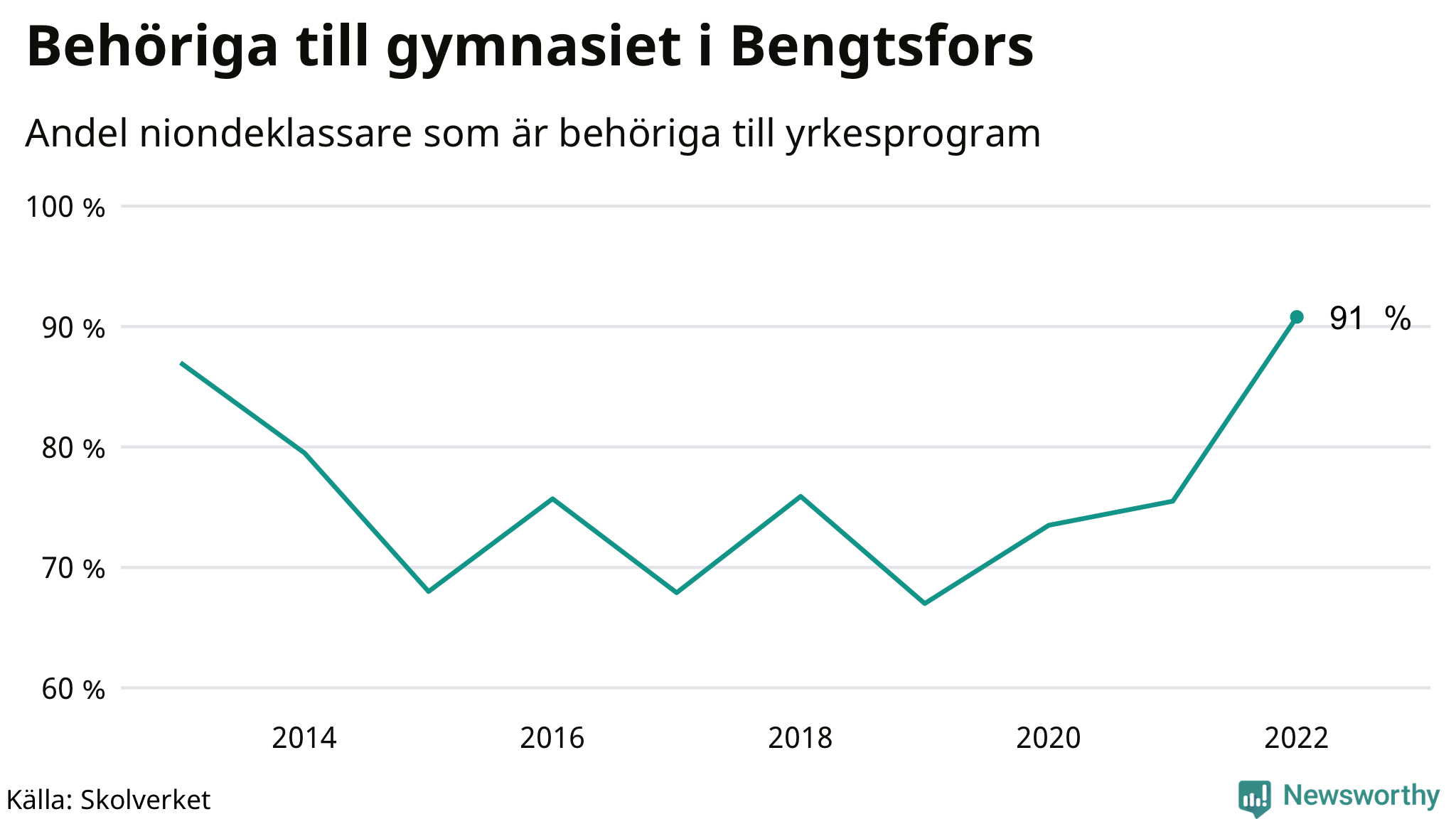 Av de niondeklassare som gick ut i Bengtsfors i våras var 91 behöriga till gymnasiets yrkesprogram. Det är den högsta siffran i kommunen under det senaste decenniet, visar Skolverkets statistik som släpptes i dag.