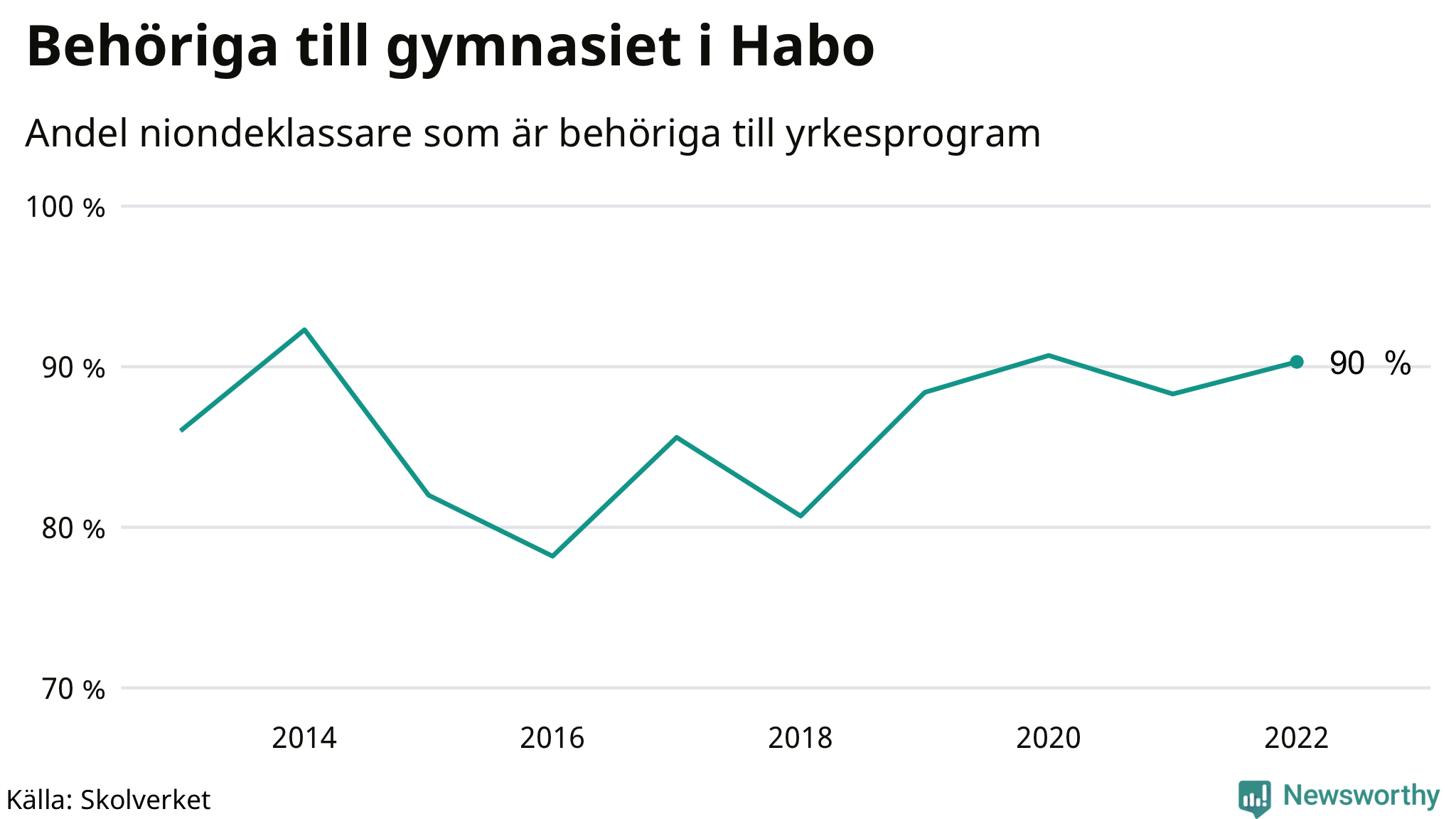 90 procent av eleverna som gick ut nian i Habo i våras var behöriga till gymnasiets yrkesprogram. Det är en högre andel än bland dem som gick ur nian våren 2021. Det är den högsta andelen i länet.