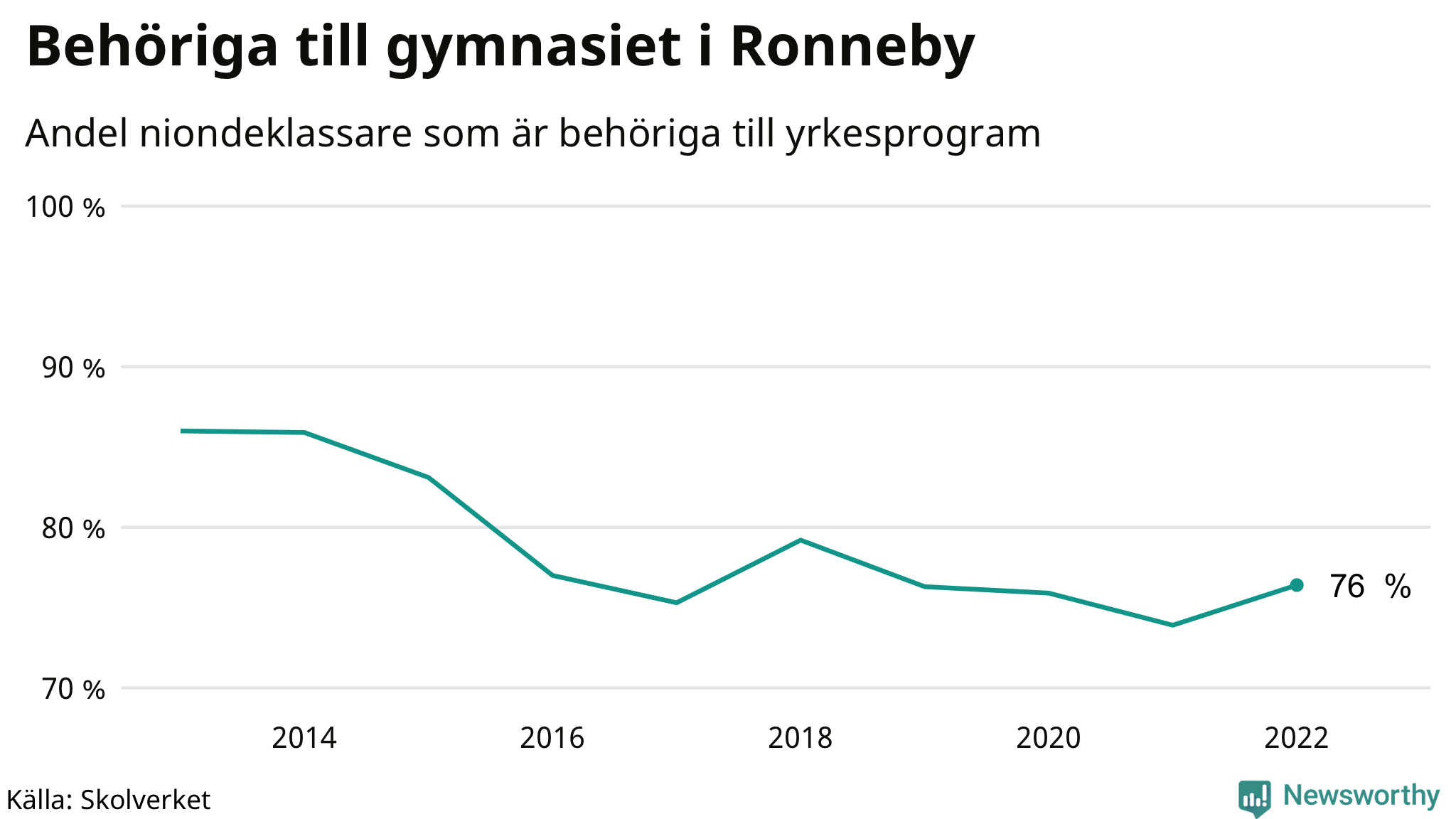 76 procent av eleverna som gick ut nian i Ronneby i våras var behöriga till gymnasiets yrkesprogram. Det är en högre andel än bland dem som gick ur nian våren 2021. Det är den lägsta andelen i länet.