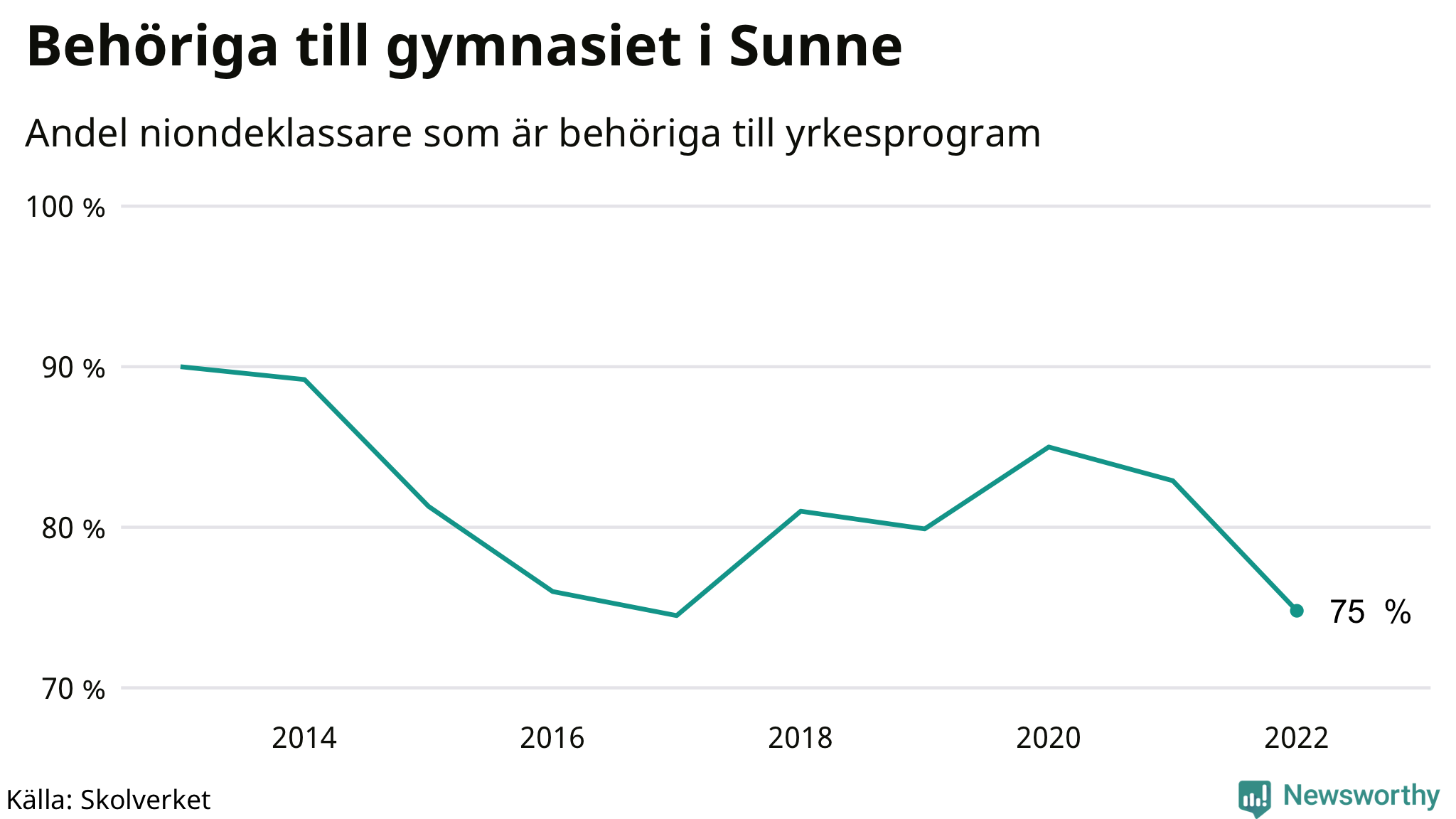 75 procent av eleverna som gick ut nian i Sunne i våras var behöriga till gymnasiets yrkesprogram. Det är en lägre andel än bland dem som gick ur nian våren 2021. Det är den lägsta andelen i länet.