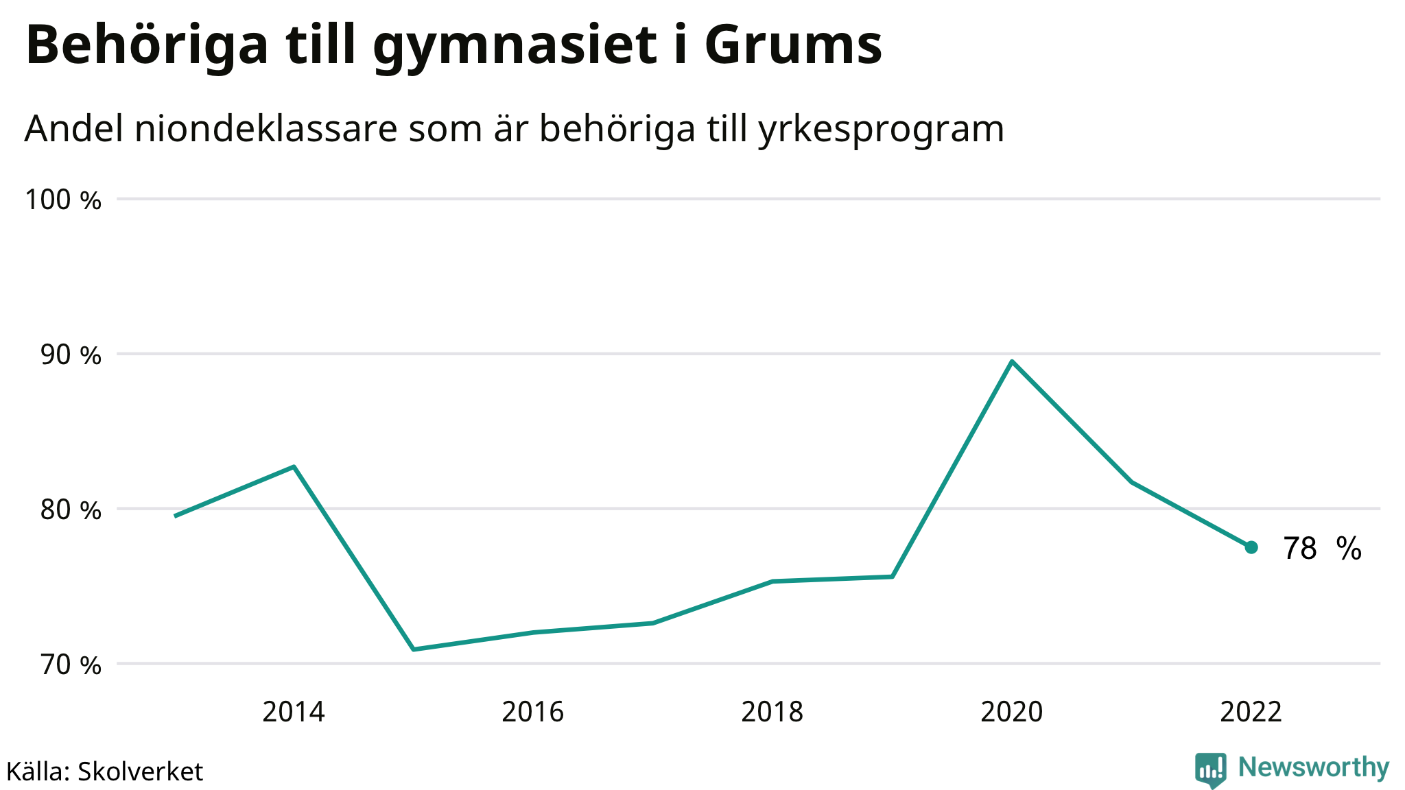 78 procent av eleverna som gick ut nian i Grums i våras var behöriga till gymnasiets yrkesprogram. Det är en lägre andel än bland dem som gick ur nian våren 2021. Det är den näst lägsta andelen i länet, före Sunne kommun.