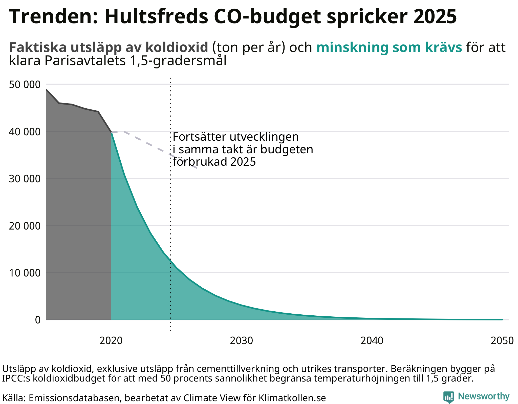 Fortsätter utsläppen i Hultsfred på samma sätt som de senaste åren når kommunen inte målet i Parisavtalet. Koldioxidbudgeten spricker 2025, enligt beräkningar från Klimatkollen.