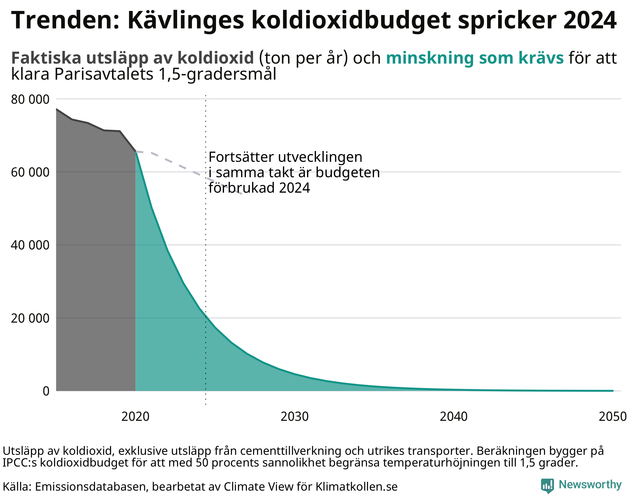 För att klara Parisavtalets mål på en temperaturökning väl under 2 grader, med sikte på 1,5 grad, behöver koldioxidutsläppen begränsas. Och för Sveriges del – har forskare vid Uppsala Universitet räknat ut – finns inte mer än 170 miljoner ton kvar om man ska hålla sin del av en budget som med 50 procents sannolikhet kan klara 1,5 grader. Med nuvarande utsläppstakt spräcks budgeten om tre år och utsläppen skulle behöva minska med 21 procent årligen.