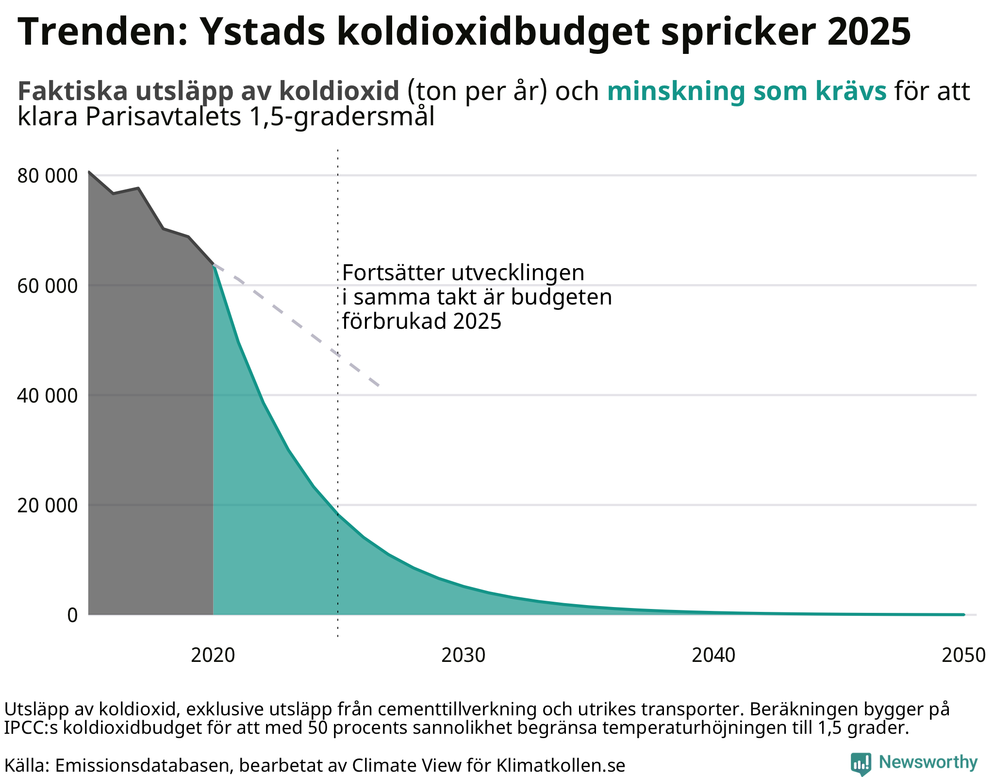 Fortsätter utsläppen i Ystad på samma sätt som de senaste åren når kommunen inte målet i Parisavtalet. Koldioxidbudgeten spricker 2025, enligt beräkningar från Klimatkollen.