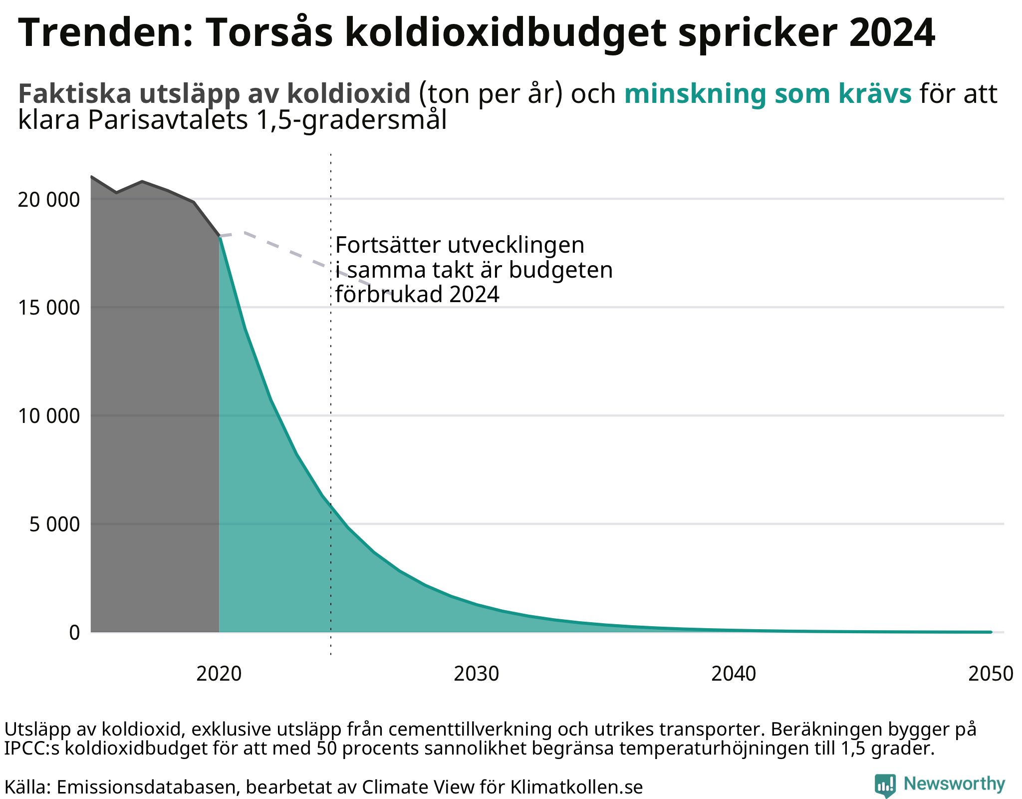 Fortsätter utsläppen i Torsås på samma sätt som de senaste åren når kommunen inte målet i Parisavtalet. Koldioxidbudgeten spricker 2024, enligt beräkningar från Klimatkollen.