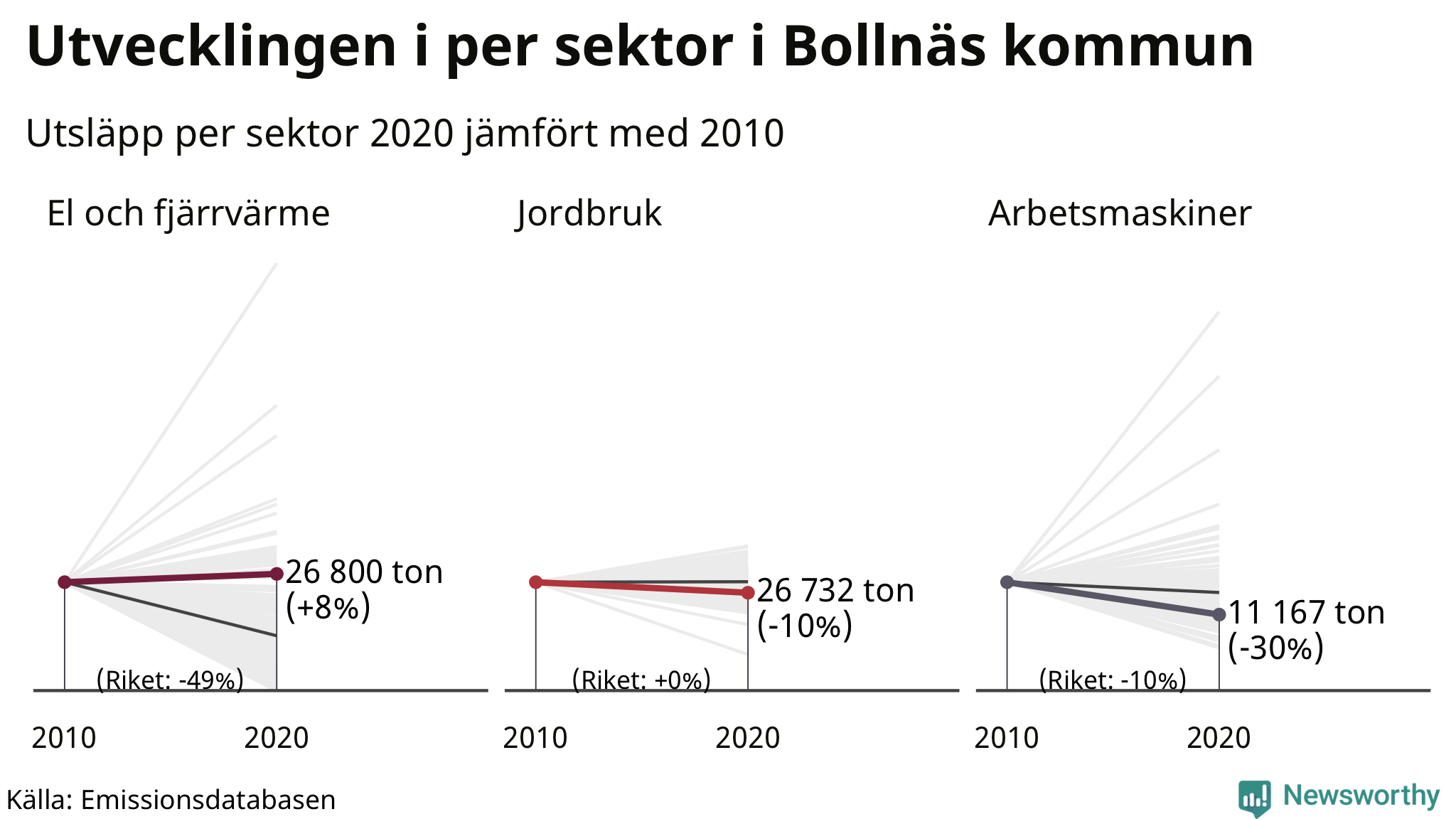 Jämfört med 2010 – som var en kall vinter – har utsläppen från el- och fjärrvärme ökat med 49 procent i Bollnäs kommun. 2020 stod sektorn för 26 800 ton koldioxidekvivalenter, eller 23 procent av utsläppen.