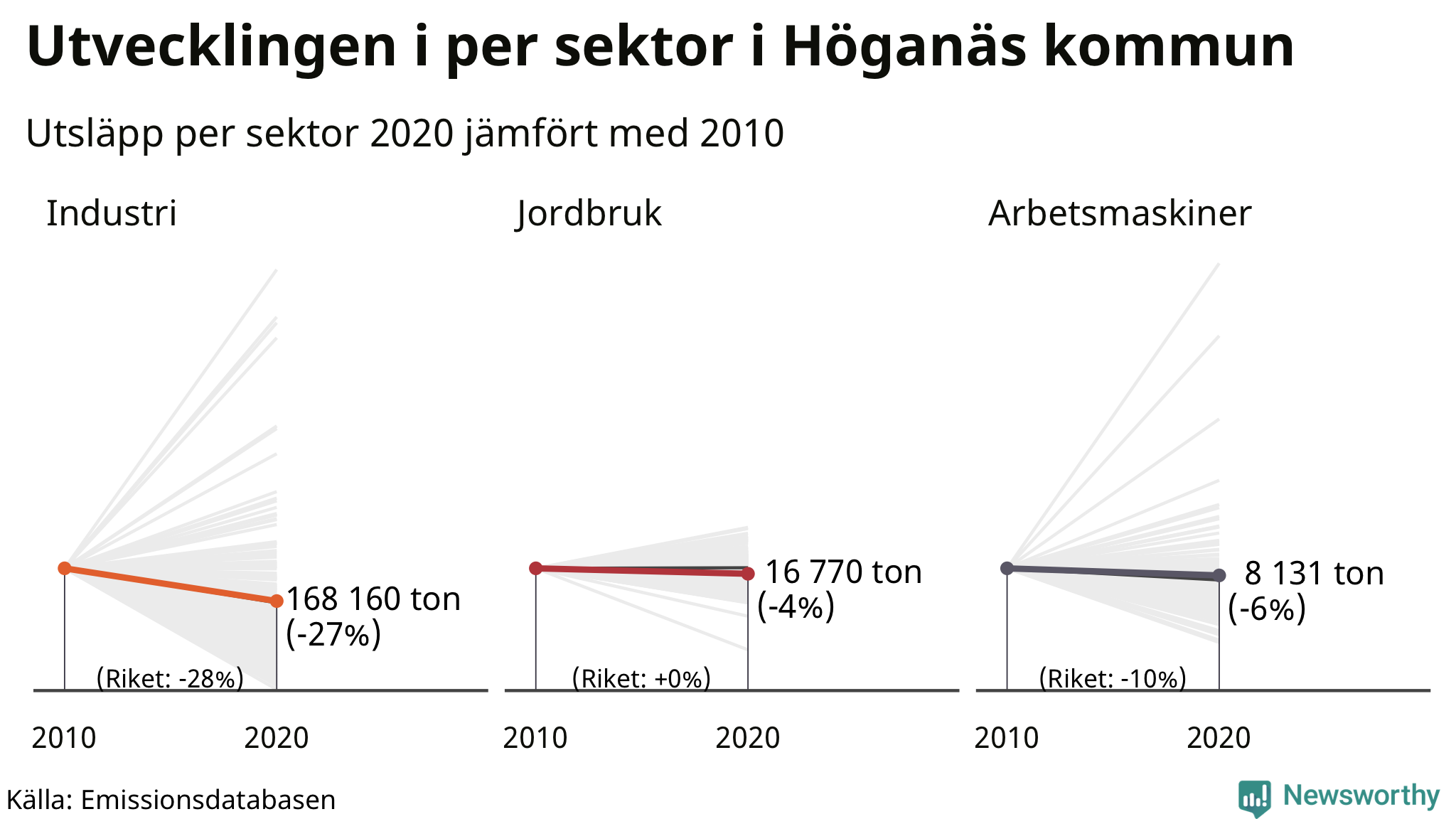 Sedan 2010 har utsläppen från industrin i Höganäs minskat med 27 procent. I landet som helhet har utsläppen från sektorn minskat med 28 procent.