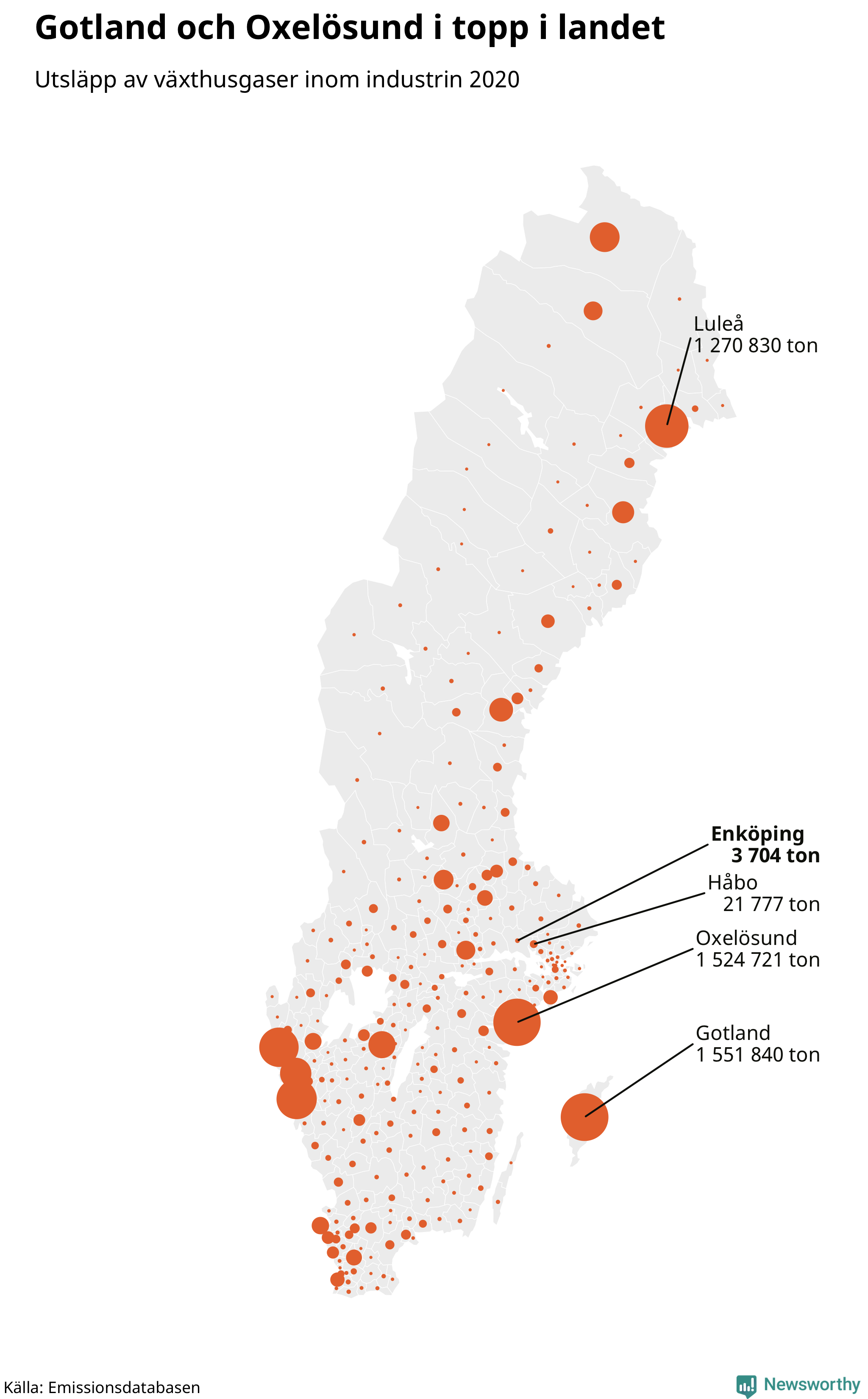 Mest industriutsläpp i Uppsala län skedde i Håbo kommun under 2020, som tillhör den tredjedel av kommuner i landet som har största industriutsläpp.