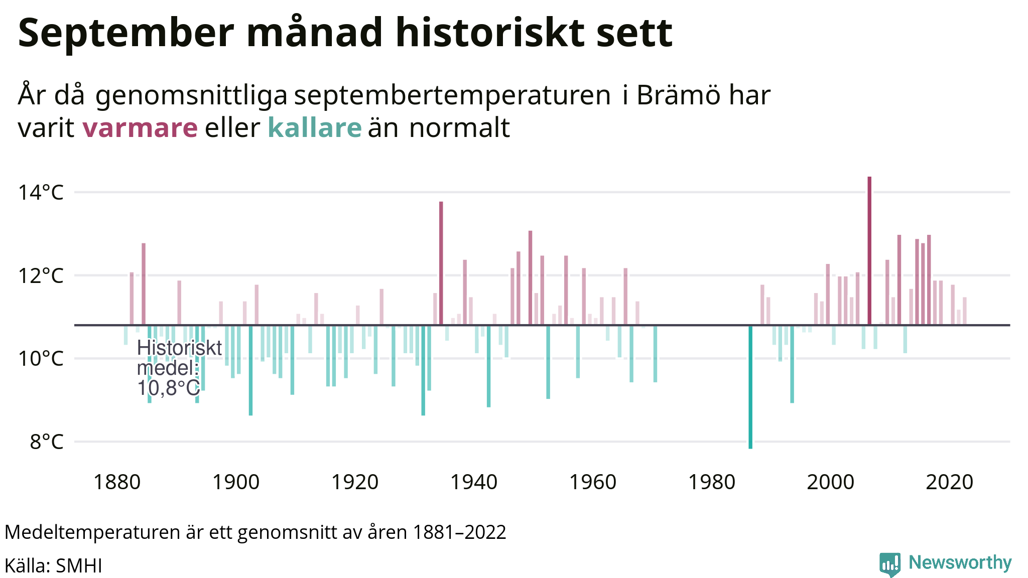 Med klimatförändringen kan vi förvänta oss gradvis varmare temperaturer. Under det senaste decenniet har september varit varmare än snittet tio av tio år på Brämön.
