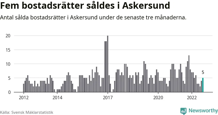 Mellan juli och september gjordes sammanlagt fem affärer med bostadsrätter i Askersunds kommun. Det kan jämföras med nio vid motsvarande tid i fjol.