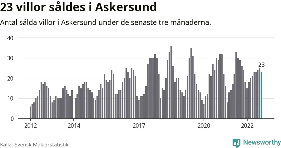 Mellan juli och september gjordes sammanlagt 23 affärer med villor i Askersunds kommun. Det kan jämföras med 29 vid motsvarande tid i fjol.
