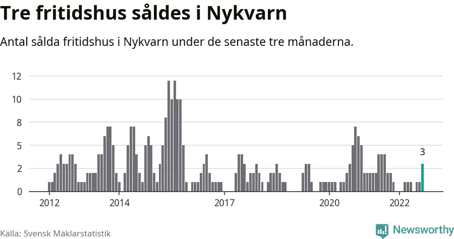 Mellan juli och september gjordes sammanlagt tre affärer med fritidshus i Nykvarns kommun. Det kan jämföras med två vid motsvarande tid i fjol.