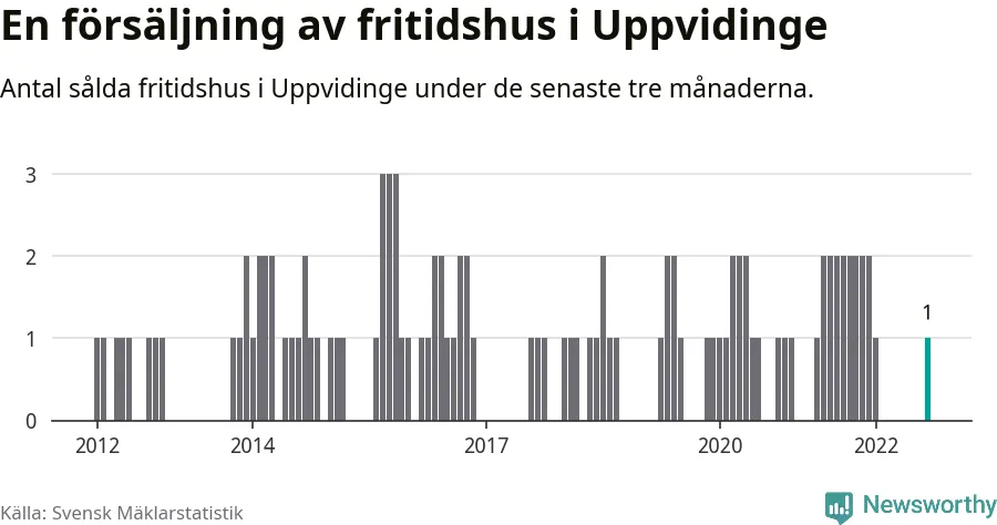 Mellan juli och september gjordes sammanlagt en affär med fritidshus i Uppvidinge kommun. Det kan jämföras med två vid motsvarande tid i fjol.