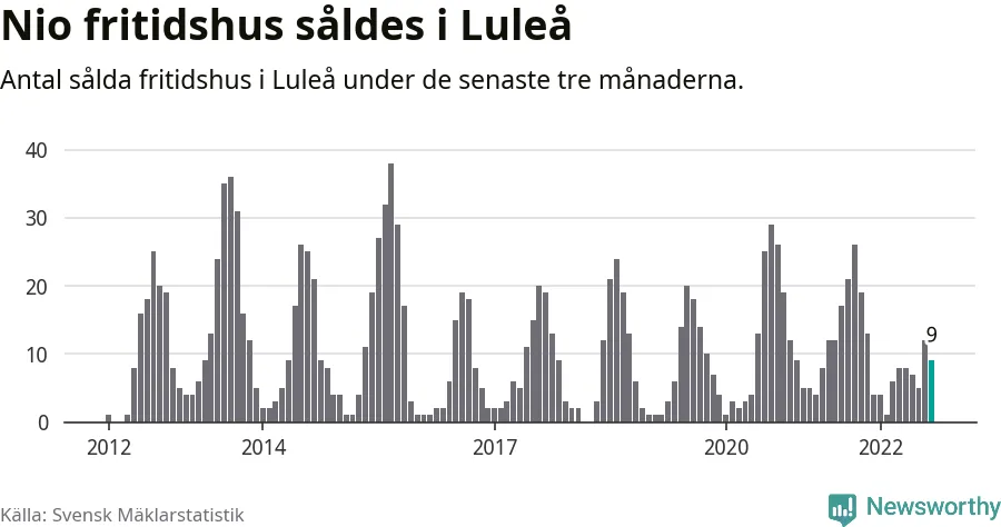 Sammanlagt såldes nio fritidshus i Luleå kommun mellan juli och september till ett genomsnittligt pris på 1,5 miljoner kronor. I fjol gjordes 26 affärer vid den här tiden på året.