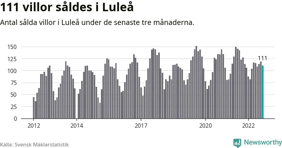 Mellan juli och september såldes 111 villor i Luleå kommun. Det är relativt få sett till aktiviteten på bostadsmarknaden i kommunen under de senaste tolv månaderna, samt det historiska snittet för den här tiden på året.