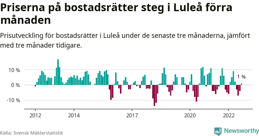 Priserna på bostadsrätter har gått upp i Luleå kommun. Medelpriset på försäljningarna under de senaste tre månaderna visar på en uppgång med 1 procent.