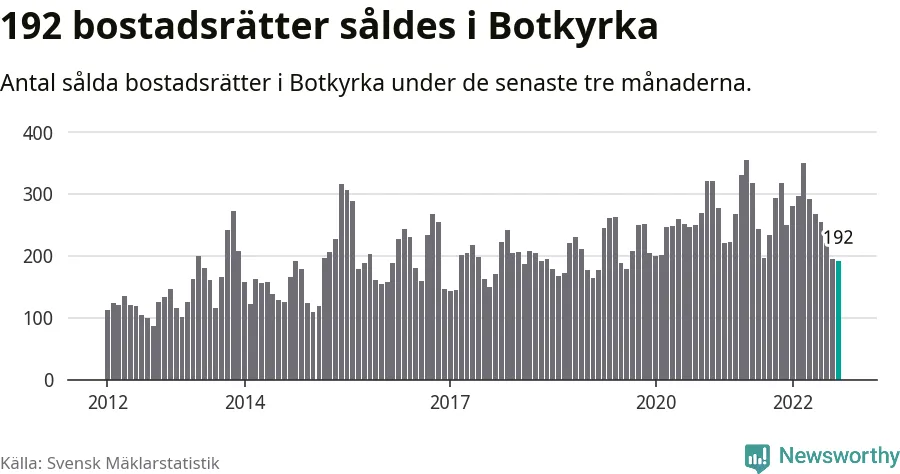 Mellan juli och september såldes 192 bostadsrätter i Botkyrka kommun. Det är färre än någon tremånadersperiod sedan 2019.