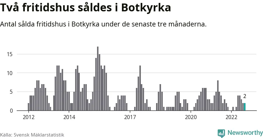 Mellan juli och september gjordes sammanlagt två affärer med fritidshus i Botkyrka kommun. Det kan jämföras med tre vid motsvarande tid i fjol.