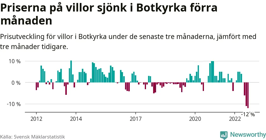 Villapriserna sjönk med 12 procent i Botkyrka kommun under de senaste tre månaderna. Det är den svagaste prisutvecklingen sedan 2012.