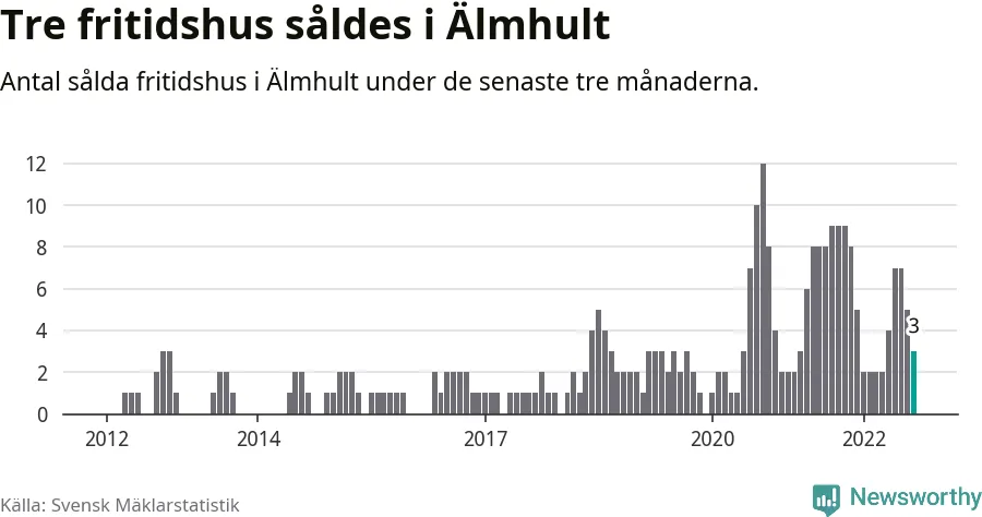 Mellan juli och september gjordes sammanlagt tre affärer med fritidshus i Älmhults kommun. Det kan jämföras med nio vid motsvarande tid i fjol.