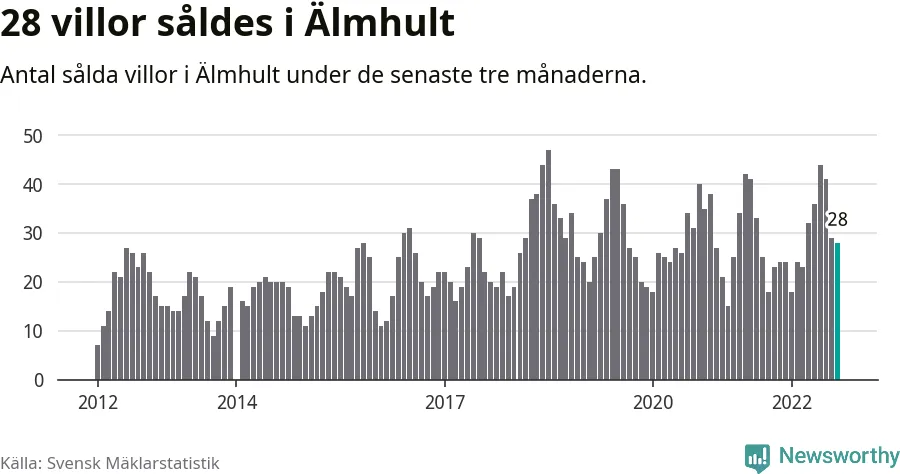 Mellan juli och september gjordes sammanlagt 28 affärer med villor i Älmhults kommun. Det kan jämföras med 18 vid motsvarande tid i fjol.
