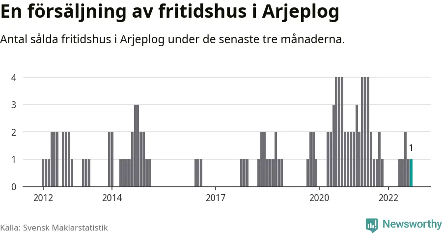 Mellan juli och september gjordes sammanlagt en affär med fritidshus i Arjeplogs kommun. Det är lika många affärer som vid motsvarande tid i fjol.