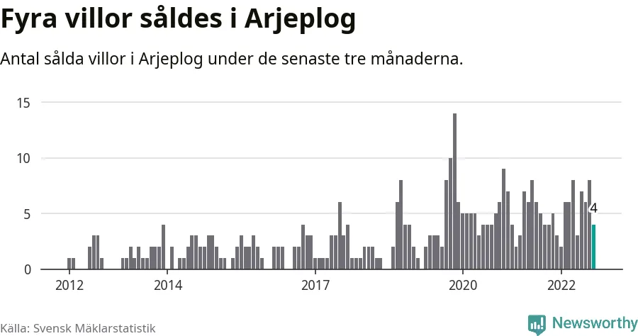 Mellan juli och september gjordes sammanlagt fyra affärer med villor i Arjeplogs kommun. Det är lika många affärer som vid motsvarande tid i fjol.