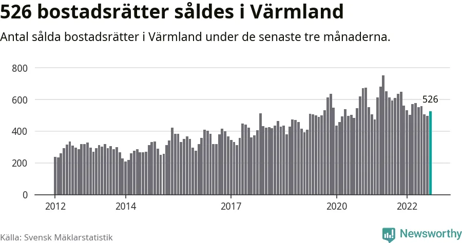 Sammanlagt såldes 526 bostadsrätter i Värmlands län mellan juli och september till ett genomsnittligt pris på 1,5 miljoner kronor. I fjol gjordes 609 affärer vid den här tiden på året.