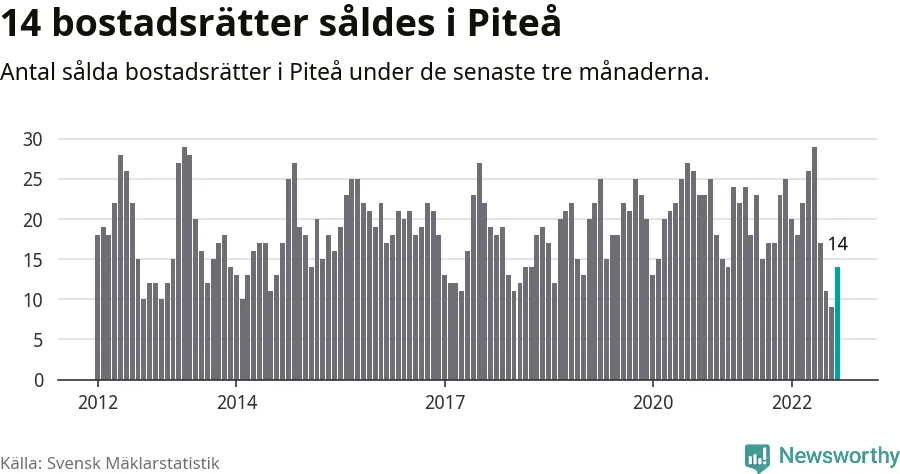 Mellan juli och september gjordes sammanlagt 14 affärer med bostadsrätter i Piteå kommun. Det kan jämföras med 17 vid motsvarande tid i fjol.
