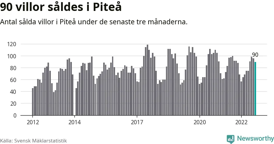 Sammanlagt såldes 90 villor i Piteå kommun mellan juli och september till ett genomsnittligt pris på 2,0 miljoner kronor. I fjol gjordes 92 affärer vid den här tiden på året.