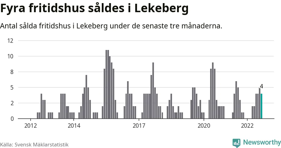 Mellan juli och september gjordes sammanlagt fyra affärer med fritidshus i Lekebergs kommun. Det kan jämföras med tre vid motsvarande tid i fjol.