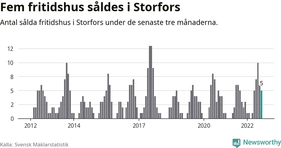 Mellan juli och september gjordes sammanlagt fem affärer med fritidshus i Storfors kommun. Det är lika många affärer som vid motsvarande tid i fjol.