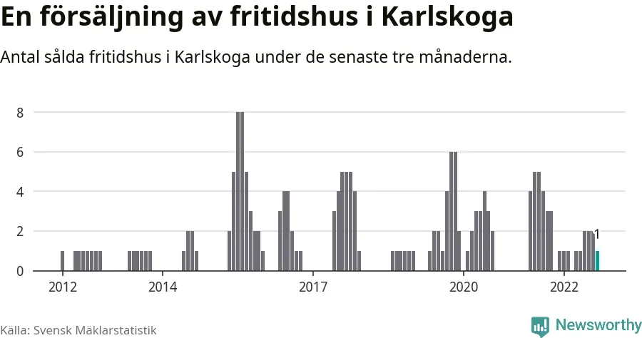 Mellan juli och september gjordes sammanlagt en affär med fritidshus i Karlskoga kommun. Det kan jämföras med tre vid motsvarande tid i fjol.
