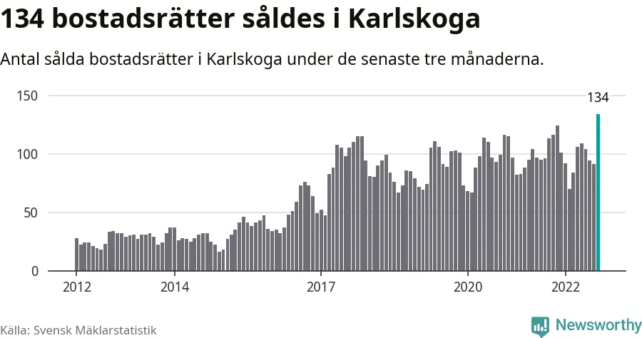 Mellan juli och september såldes 134 bostadsrätter i Karlskoga kommun. Det är fler än någon tremånadersperiod sedan 2012.