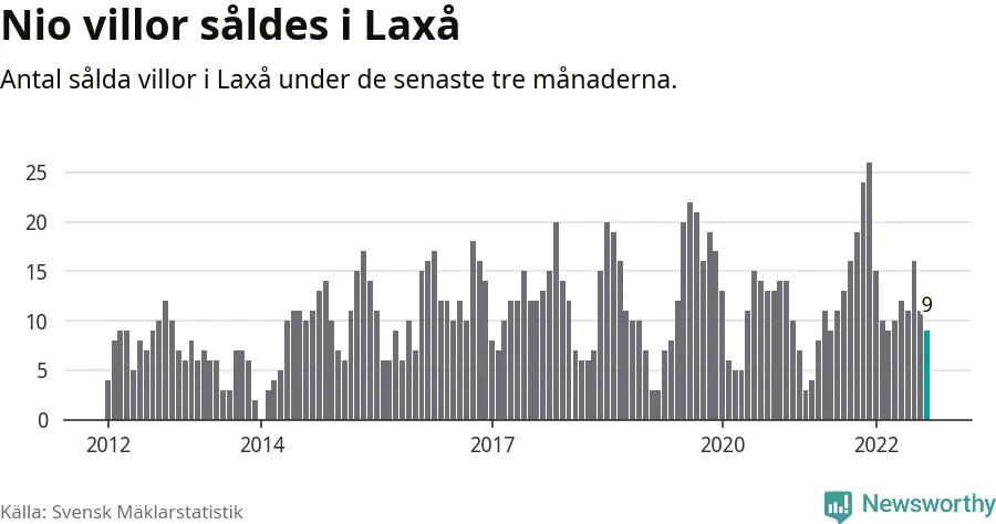 Mellan juli och september gjordes sammanlagt nio affärer med villor i Laxå kommun. Det kan jämföras med 16 vid motsvarande tid i fjol.