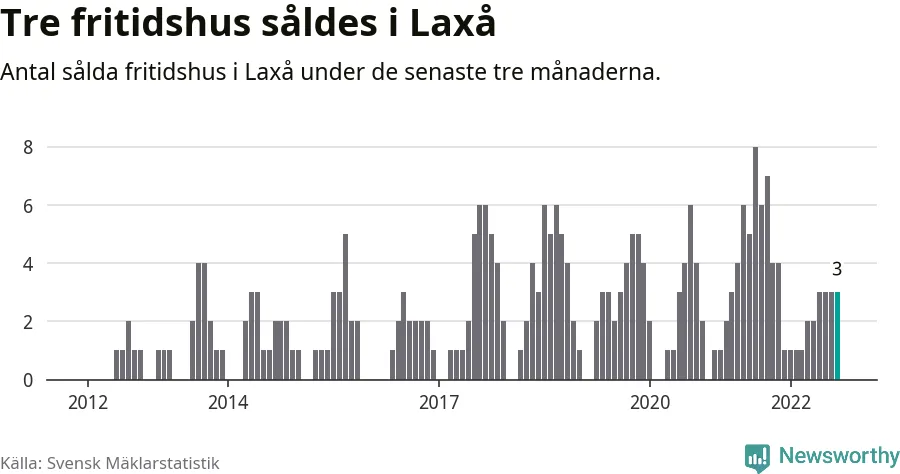 Mellan juli och september gjordes sammanlagt tre affärer med fritidshus i Laxå kommun. Det kan jämföras med sju vid motsvarande tid i fjol.