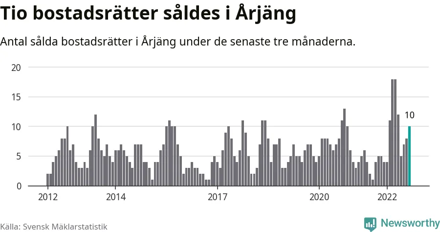 Mellan juli och september gjordes sammanlagt tio affärer med bostadsrätter i Årjängs kommun. Det kan jämföras med fyra vid motsvarande tid i fjol.