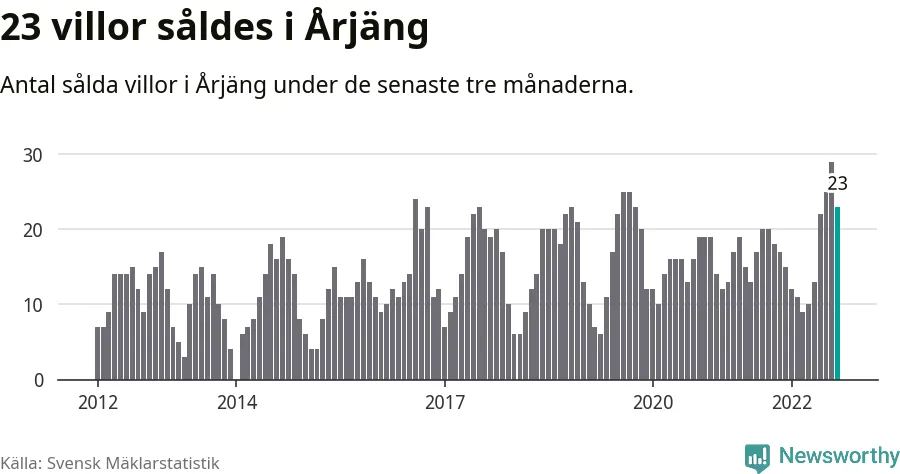 Mellan juli och september gjordes sammanlagt 23 affärer med villor i Årjängs kommun. Det kan jämföras med 20 vid motsvarande tid i fjol.