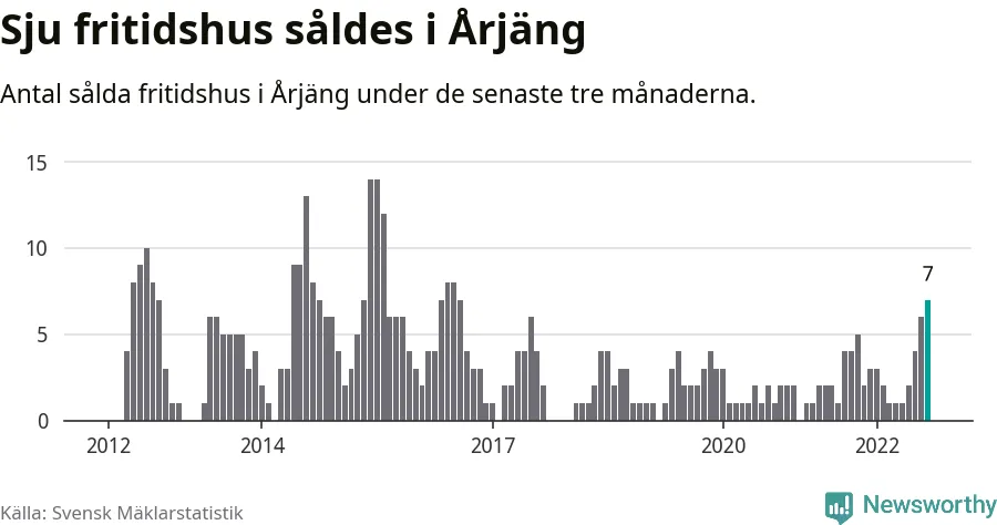 Mellan juli och september gjordes sammanlagt sju affärer med fritidshus i Årjängs kommun. Det kan jämföras med fyra vid motsvarande tid i fjol.