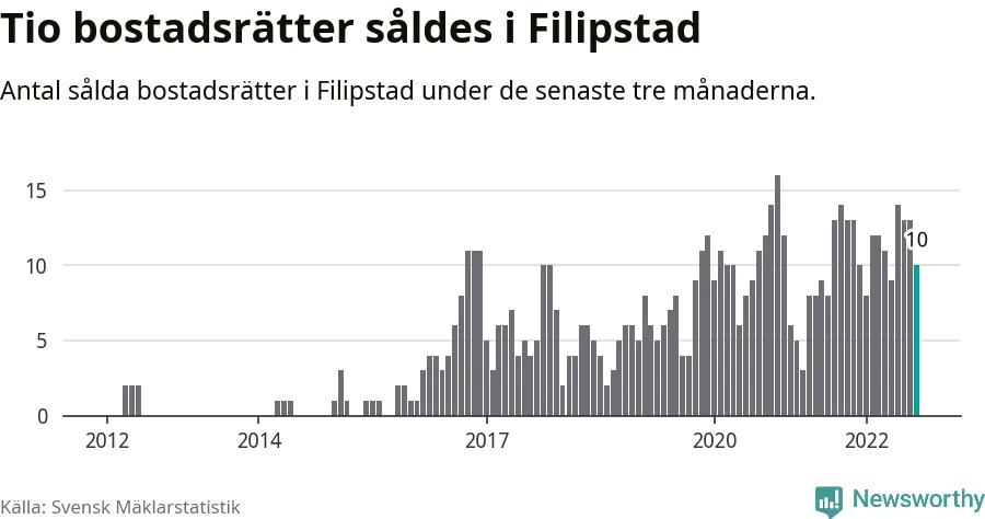 Mellan juli och september gjordes sammanlagt tio affärer med bostadsrätter i Filipstads kommun. Det kan jämföras med 14 vid motsvarande tid i fjol.