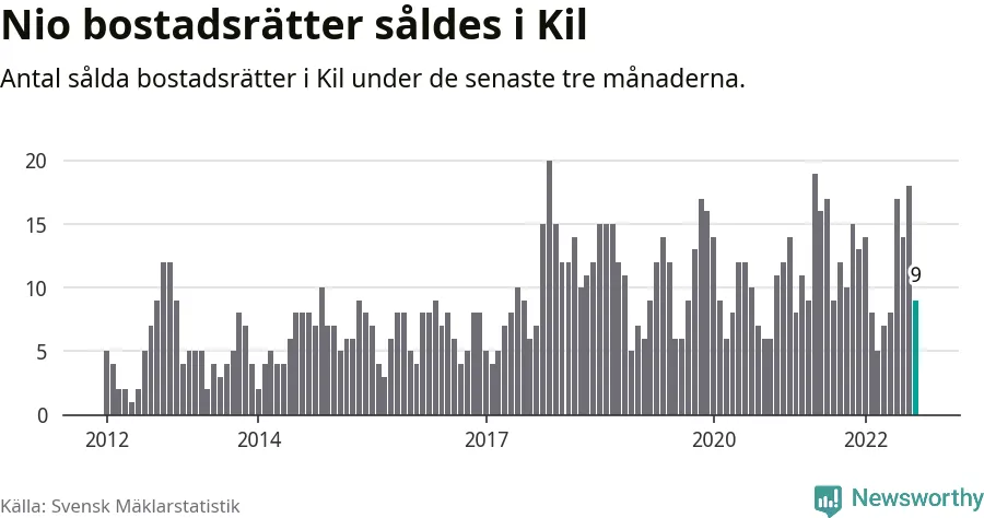 Mellan juli och september gjordes sammanlagt nio affärer med bostadsrätter i Kils kommun. Det kan jämföras med tolv vid motsvarande tid i fjol.