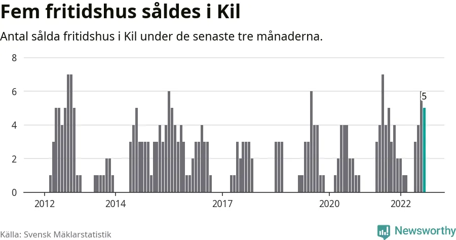 Mellan juli och september gjordes sammanlagt fem affärer med fritidshus i Kils kommun. Det är lika många affärer som vid motsvarande tid i fjol.