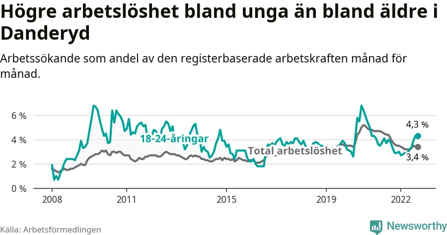 Den senaste månadsstatistiken från Arbetsförmedlingen visar på en uppgång i ungdomsarbetslöshet i Danderyds kommun med 1,0 procentenheter. Arbetslösheten bland personer i åldern 18–24 år låg i september på 4,3 procent.