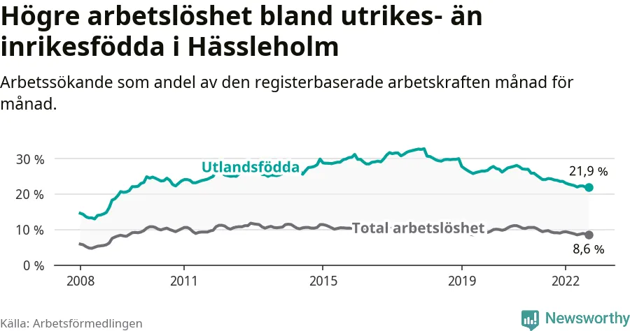 Läs mer om arbetslösheten bland utlandsfödda längre ner i den här texten.